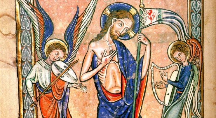 However, the Greeks used pascha, originally having nothing to do with the verb paschein, “to suffer,” but later writers preferred the symbolic association anyway, when in fact, it comes from the Aramaic dialect of the Hebrew pesach which means Passover, the Jewish holiday commemorating the deliverance from slavery in Egypt. Jesus made much of that when he explained the Eucharist at the Passover Seder with his Apostles (Jesus symbolically associated himself as the new Moses, delivering the people not from an earthly bondage but from a sinful one; he is the manna from heaven, etc.)