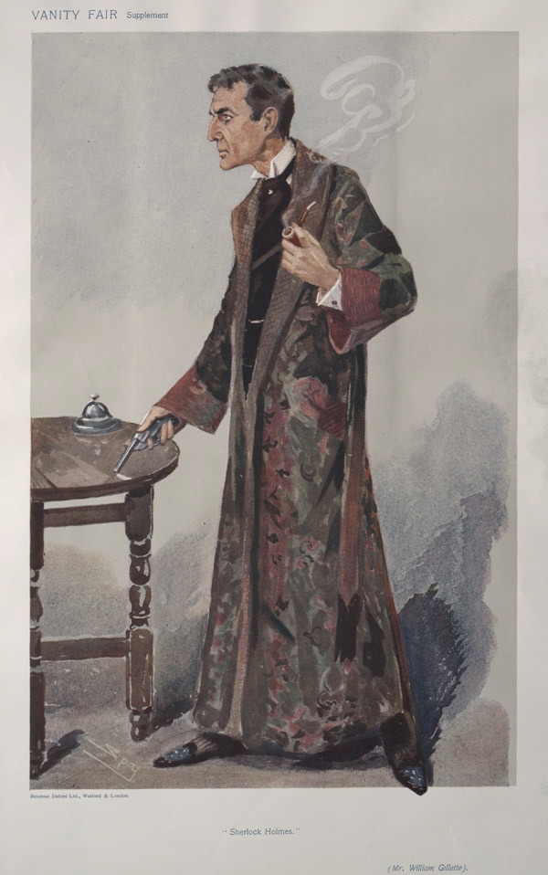 That wasn’t a pipe Holmes ever smoked in the stories either, but Gillette felt he needed a big pipe to be seen more readily on stage, especially for those seated far in the back.