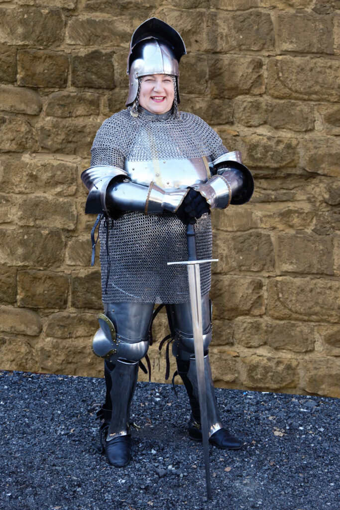 I even asked a friend to let me borrow some armor to get the feel of that. It’s more difficult when the armor isn’t made to you. Like a tailored suit, it makes a difference in the feel of it. But it was certainly a great lesson in the hands on approach. Was it easy to move in? Not for me, because as I said, it wasn’t made for my body type, but had it been made for me, yes, it would have been easier to move in. Although if you want to sneak up on someone, don’t wear armor. It clanks. It is not stealth wear.